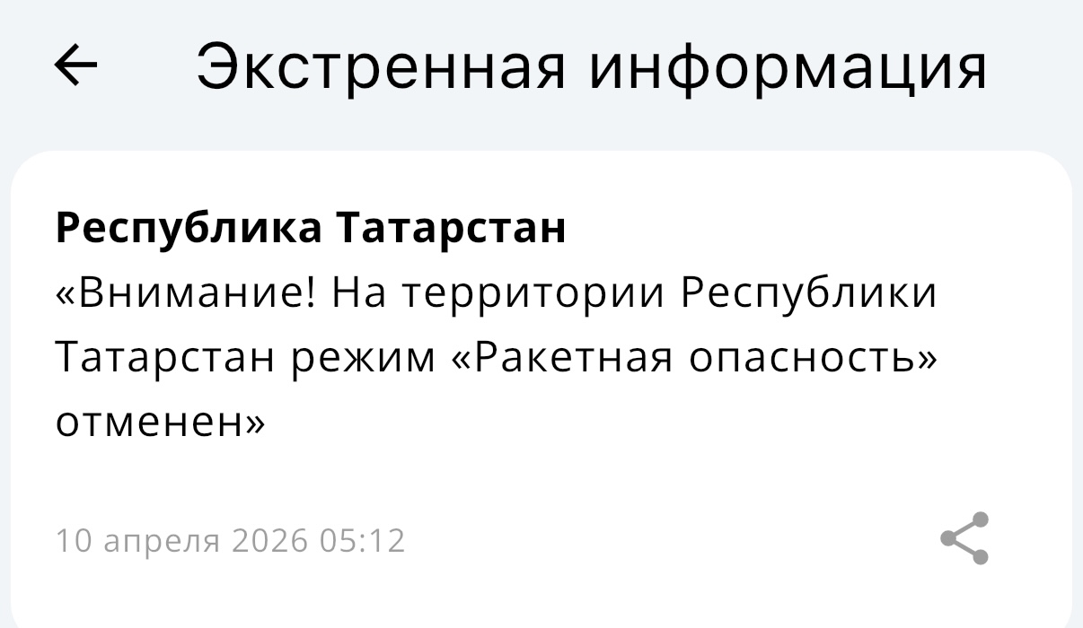 В Казани и других городах РТ зазвучали сирены — жители и гостей республики по громкой связи предупреждали об опасности ракетного удара и настоятельно советовали спуститься в укрытия.