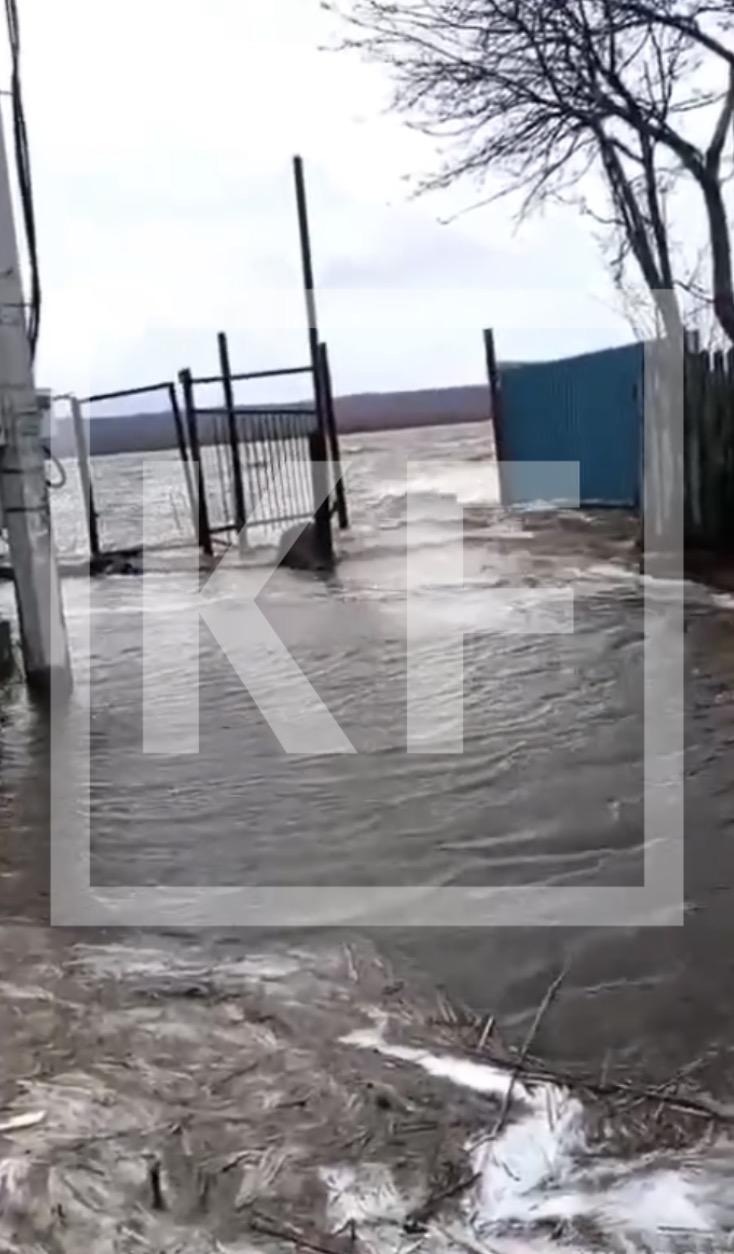 Кадры сняты недалеко от поселка Васильево под Казанью. На них видно, что вода быстрым течением пробивается через заборы, попадая на жилые участки.