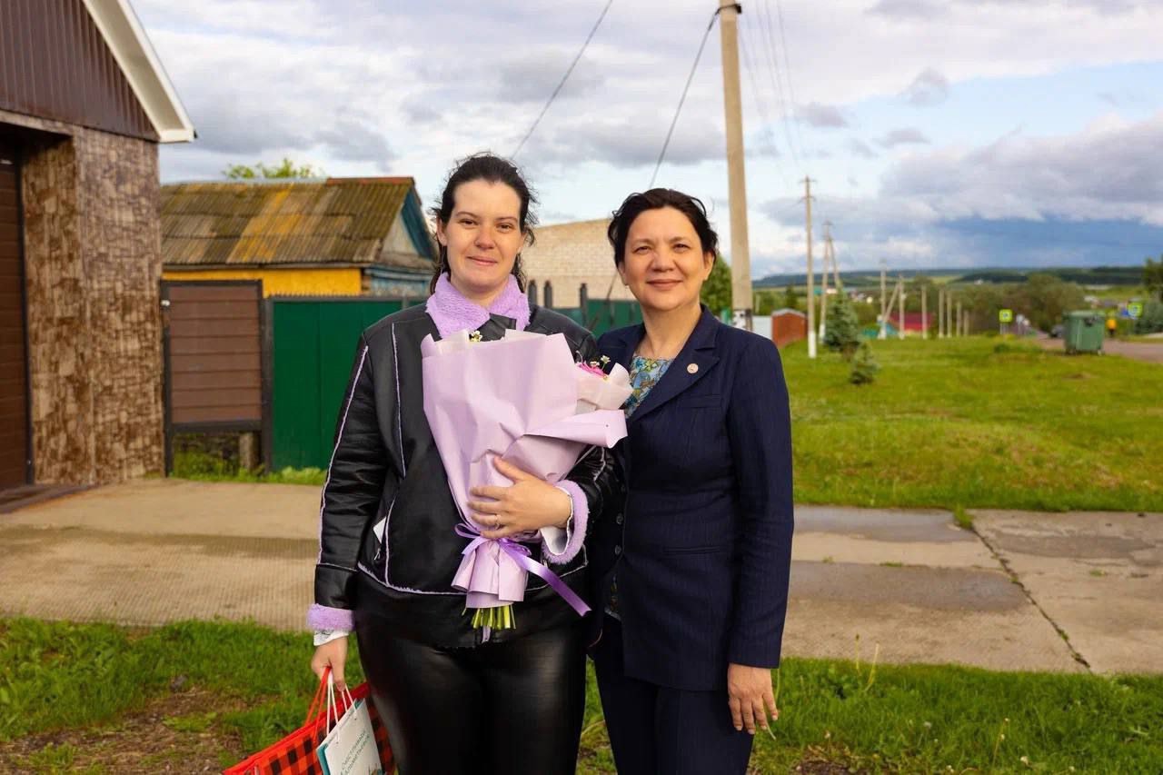 Первой в списке поздравлений была семья мобилизованного, который недавно прибыл в краткосрочный отпуск, чтобы провести время с близкими. У пары родился сын Николай, ставший младшим братом для Дарьи. Хабутдинова пообщалась с родителями, узнала о повседневной жизни бойца и волнующих бытовых вопросах.