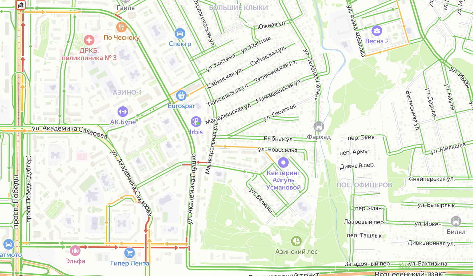 В казанском Азино больше двух часов движение на дороге затруднено из-за дорожно-транспортного происшествия. Об этом сообщают очевидцы в телеграм-канале «Казань на максималках». Также информация подтверждается сервисом «Яндекс Карты».