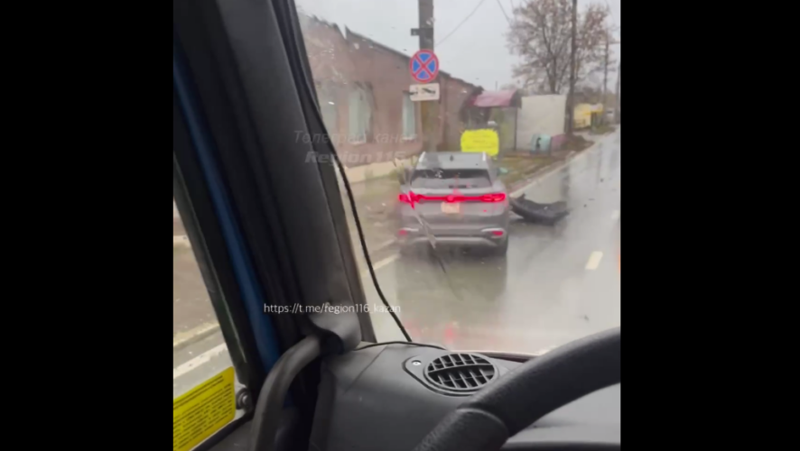 На кадрах видно, что в столб впечатался кроссовер, вероятнее всего, китайский. Судя по видео, опубликованном очевидцами происшествия, у автомобиля из-за столкновения отлетел бампер.