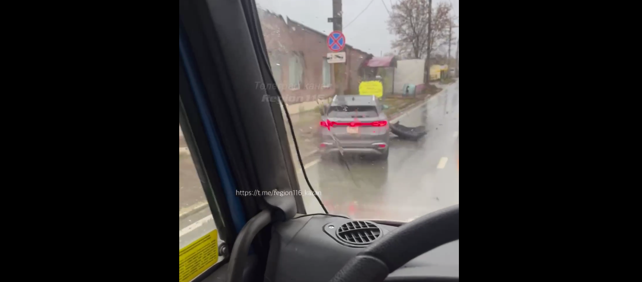 На кадрах видно, что в столб впечатался кроссовер, вероятнее всего, китайский. Судя по видео, опубликованном очевидцами происшествия, у автомобиля из-за столкновения отлетел бампер.