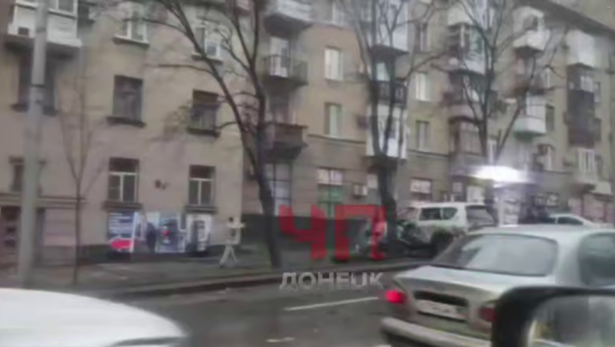 Появилось видео с места взрыва внедорожника в Донецке. Его публикует «RT на русском» в своём телеграм-канале, ссылаясь на очевидцев происшествия.