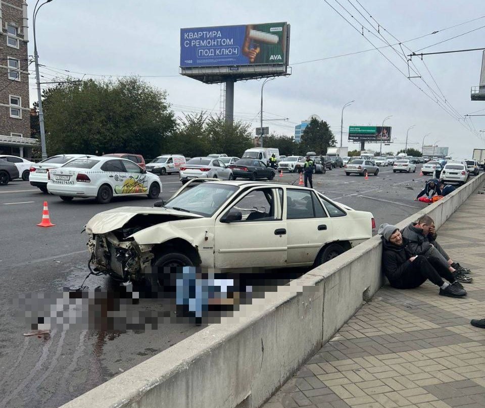 В результате мощного удара несколько пассажиров выбросило из салонов машин прямо на дорогу.
