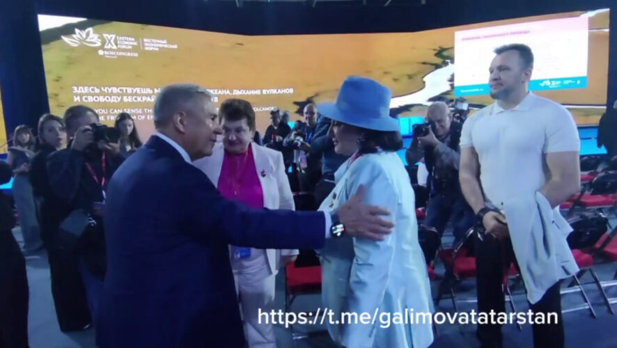 Известный тренер по художественной гимнастике Ирина Винер пообщалась на Восточном экономическом форуме с раисом Татарстана Рустамом Миннихановым и пообещала приехать в республику. Видео встречи опубликовала в своём телеграм-канале пресс-секретарь главы республики Лилия Галимова.