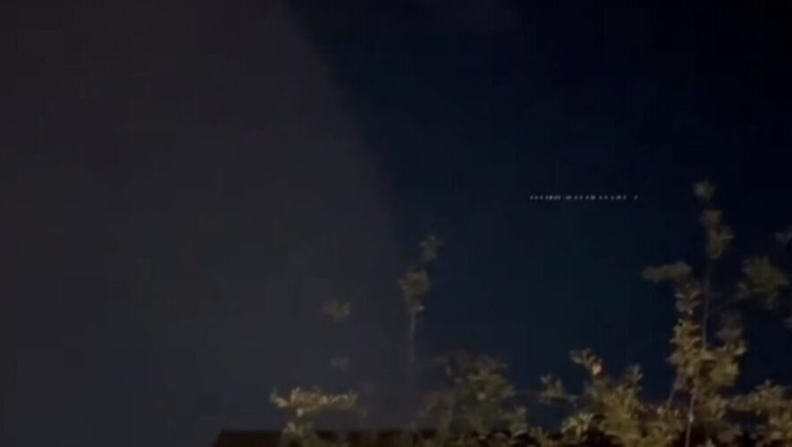 На кадрах видно большое количество огоньков. Это и есть спутники компании Starlink Илона Маска. При этом многие жители не поняли, что это и стали активно рассматривать «неопознанный» летающий объект.