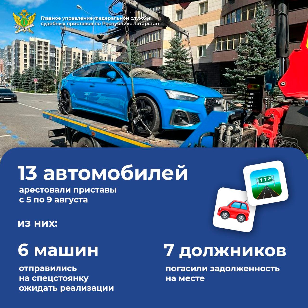 В Татарстане за неделю приставы арестовали 13 автомобилей должников. Об этом сообщили в пресс-службе ГУФССП по РТ.