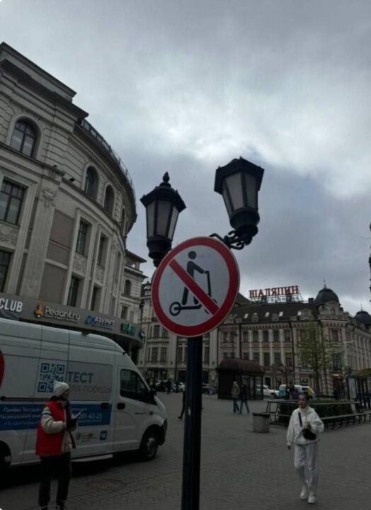 На улице Баумана в Казани появились знаки, запрещающие передвижение на электросамокатах и других средствах индивидуальной мобильности. Фотографиями делятся очевидцы в социальных сетях.