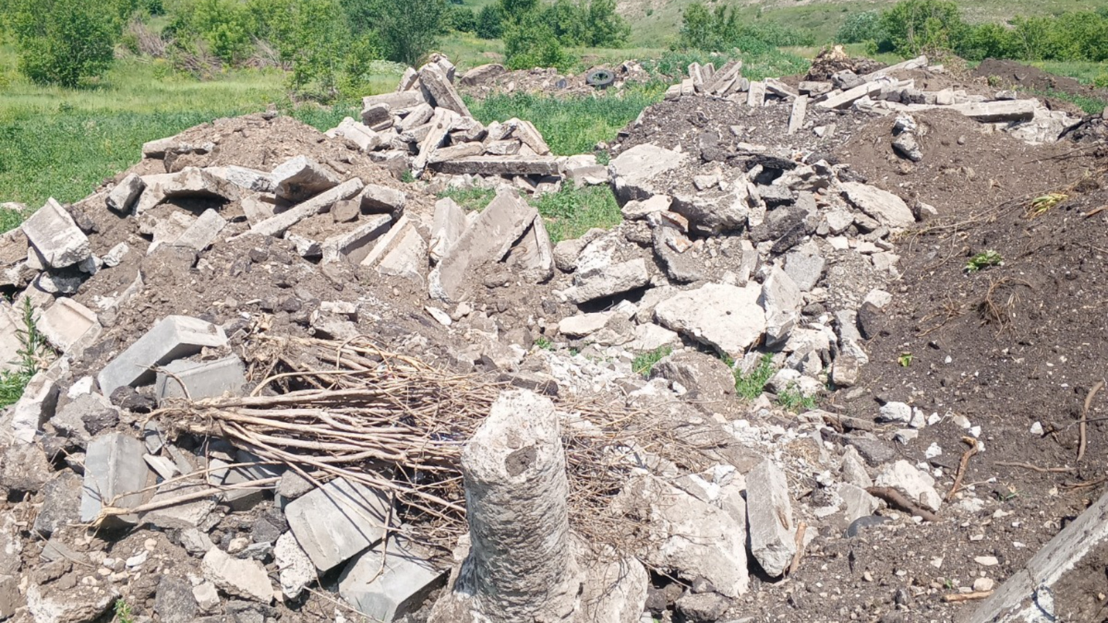 На первом участке специалисты зафиксировали сброс боя железобетонных изделий и загрязненного грунта. Площадь свалки составила более 2185 кв.м. Объем отходов — около 1500 «кубов».