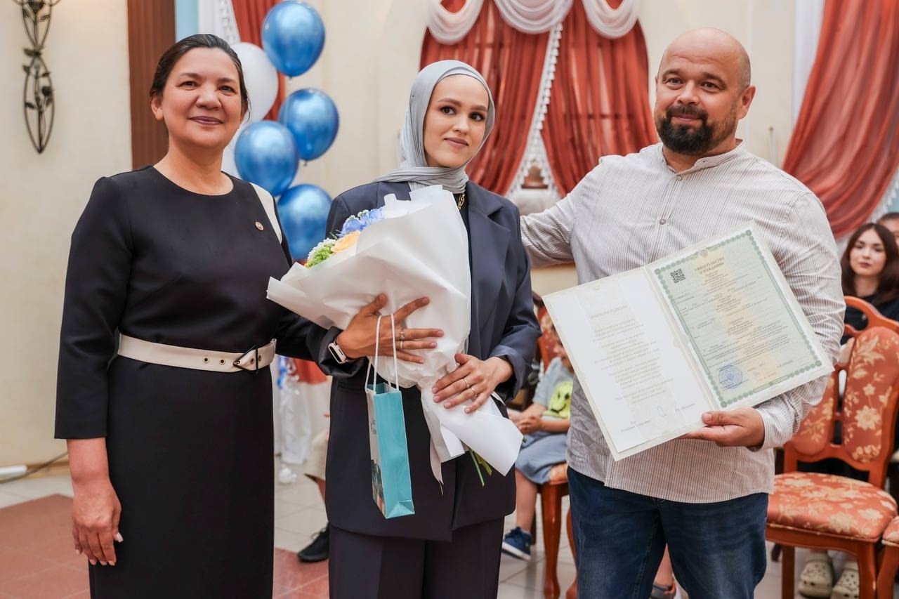 Для семьи в местном управлении ЗАГС организовали торжественное вручение свидетельства о рождении — мальчик стал тысячным ребенком, зарегистрированным в 2025 году в районе. На церемонии присутствовала руководитель исполкома Гюзель Хабутдинова.