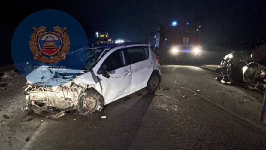 Появились фото с места смертельной аварии под Казанью, где лоб в лоб столкнулись две иномарки