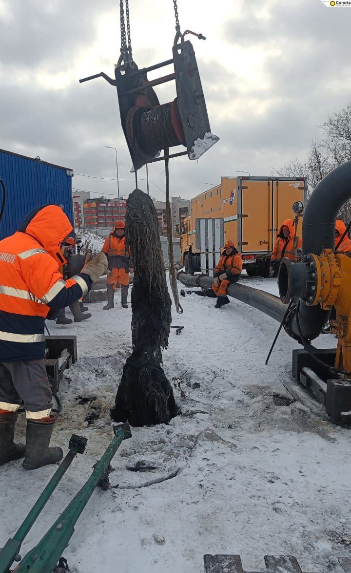 Работники МУП «Водоканал» в Казани извлекли из канализационного люка огромный ком из влажных салфеток и различных отходов, который достигал нескольких метров в высоту. Его обнаружили во время реконструкции крупного канализационного коллектора, как сообщили в пресс-службе предприятия.