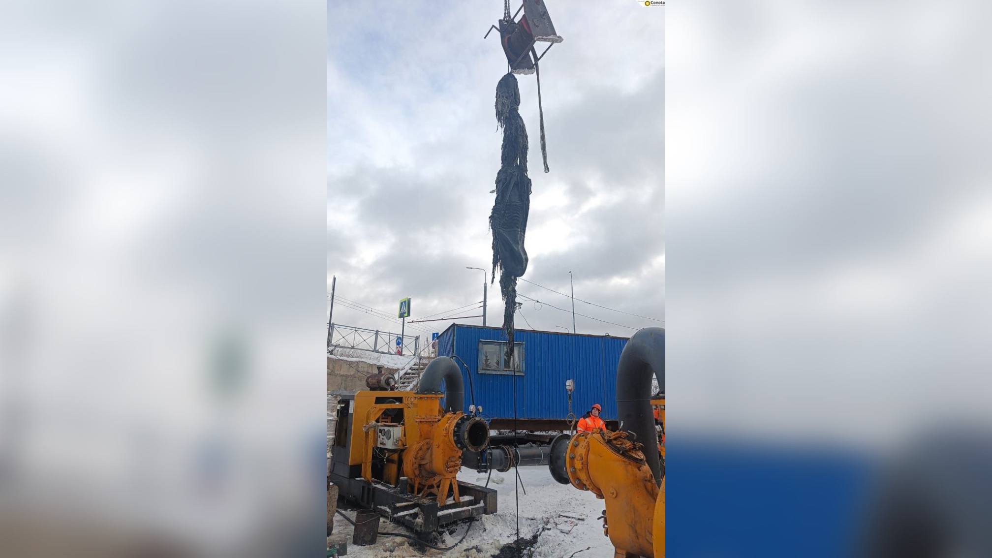Коммунальные службы также предоставили фотографии решеток на самой крупной канализационной насосной станции города — «Ново-Ометьевская». На этих решетках накопился большой ком из салфеток, тряпок и другого мусора.