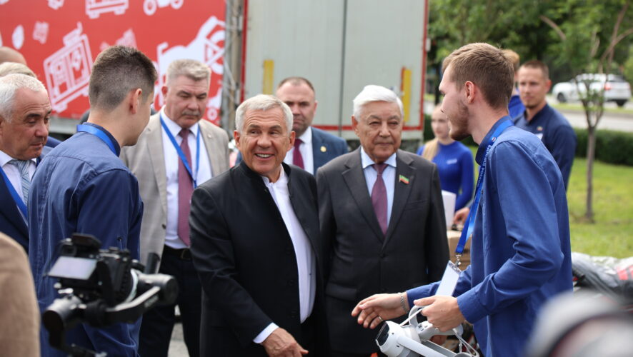 Рустам Минниханов пообщался с сопровождающими груз и пожелал им хорошей дороги.