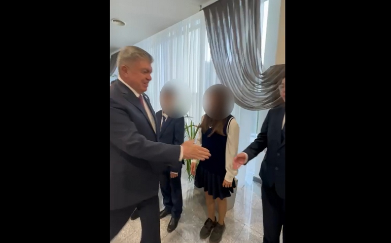 Следующая учащаяся тоже не осталась без внимания Магдеева. Но вот остальным школьницам он ладони жать не стал.
