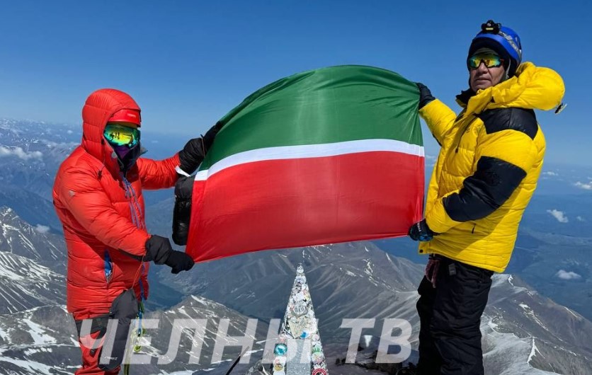 Участники экспедиции подняли на вершину флаг Татарстана, чак-чак, тюбетейку и три кг земли с родины.