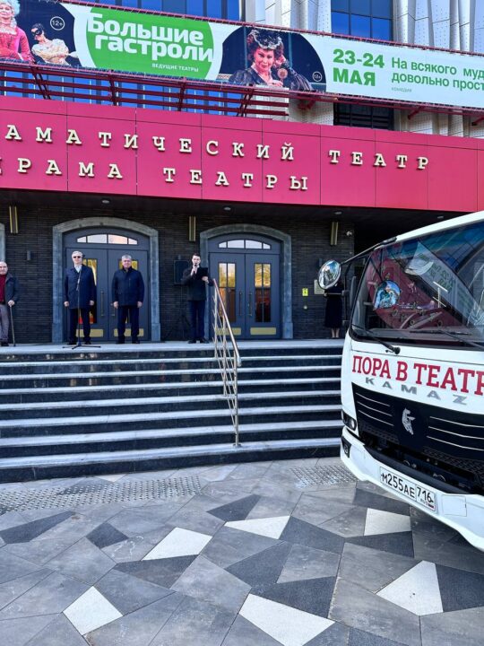 «КАМАЗ Компас» вручили коллективу русского драмтеатра «Мастеровые» Набережных Челнов Наиль Магдеев и гендиректор автогиганта Сергей Когогин. Машина будет перевозить реквизиты во время гастролей.