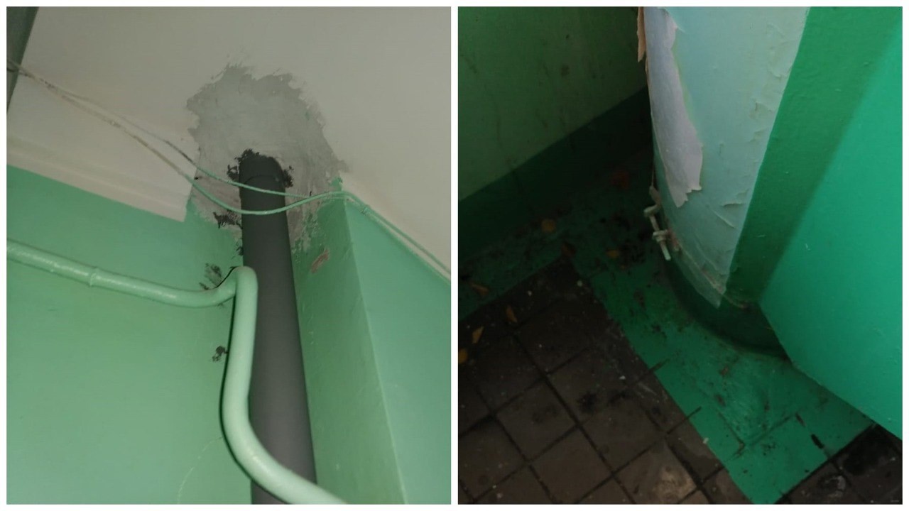 Инспектор обнаружил, что конструкции инженерного оборудования в подвале не были исправны. В тепловом пункте на трубопроводах он заметил коррозию, местами отсутствовала изоляция. Также специалист наткнулся на мусор в подвале. Кроме того, на окнах в одном из подъездов не было ручек, в другом отслаивалась краска на стенах, виднелись следы от протечек.