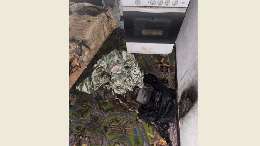 Огнеборцы во время разведки обнаружили открытой дверь в жилище на втором этаже. Там их встретил 57-летний хозяин. На кухне пожарные обнаружили оплавленный натяжной потолок. На полу – обгоревшие элементы одежды.