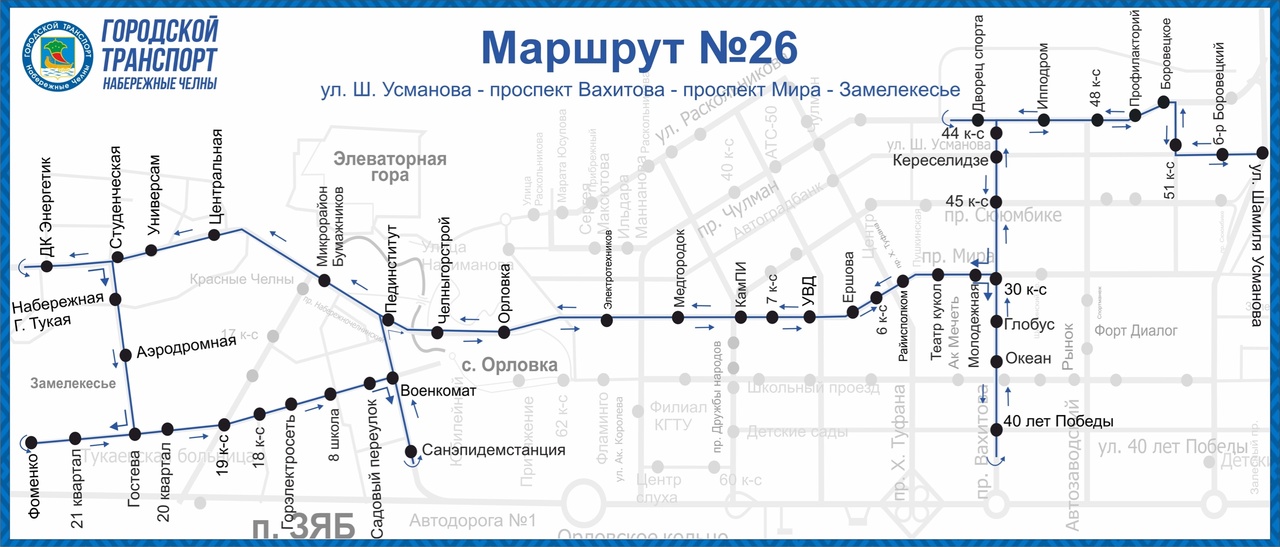 За прошедшую неделю были возвращены маршруты №13 и №26. У последнего схема движения включает поселки ГЭС, ЗЯБ, микрорайон Замелекесье, остановку «Улица 40 лет Победы». С нее можно выехать на проспект Мира. Маршруты №4 и №6 теперь двигаются по улицам Полякова, Абсалямова, Алиша. Маршрут №9 теперь курсирует по поселку ЗЯБ.