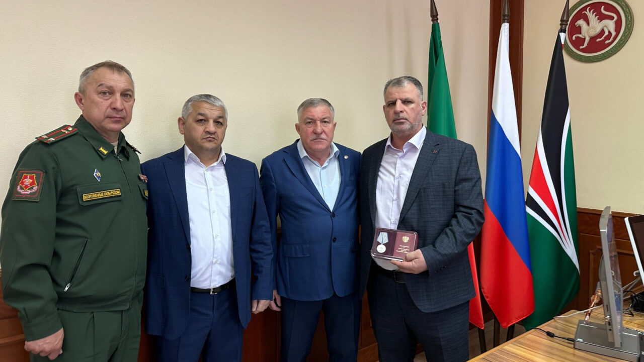 Глава Лениногорского района Рягат Хусаинов вручил медаль «За отвагу» отцу солдата Мехману Джами оглы Садыхову. По указу Президента России Владимира Путина его сын Орхан Мехман оглы Садыхов удостоен награды посмертно.