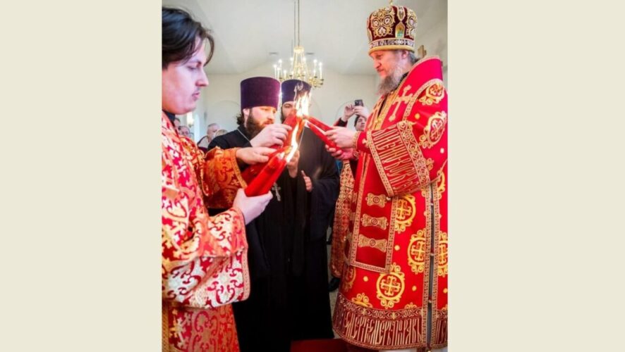 В нижнекамский храм доставили Благодатный огонь из Иерусалима. Он находится в храме Воскресения Христова на улице Мурадьяна.