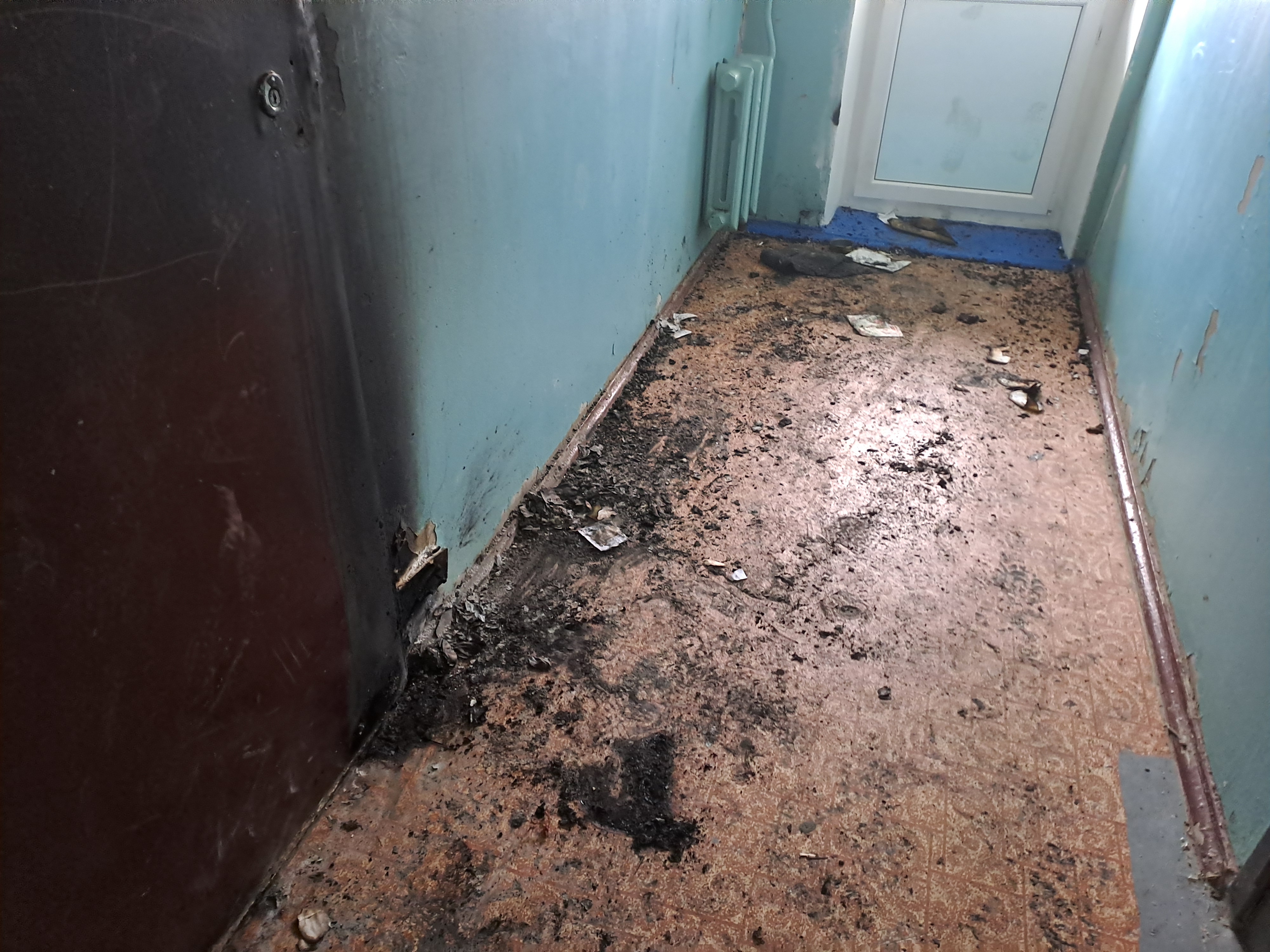 Жительница поселка поведала огнеборцам, как все произошло. По ее словам, перед пожаром к ней приходил бывший сожитель. В квартиру она его не пустила, потому что он был неадекватен. Спустя пару часов случился поджог. Кроме того, женщина утверждает: слышала за дверью голос бывшего возлюбленного.