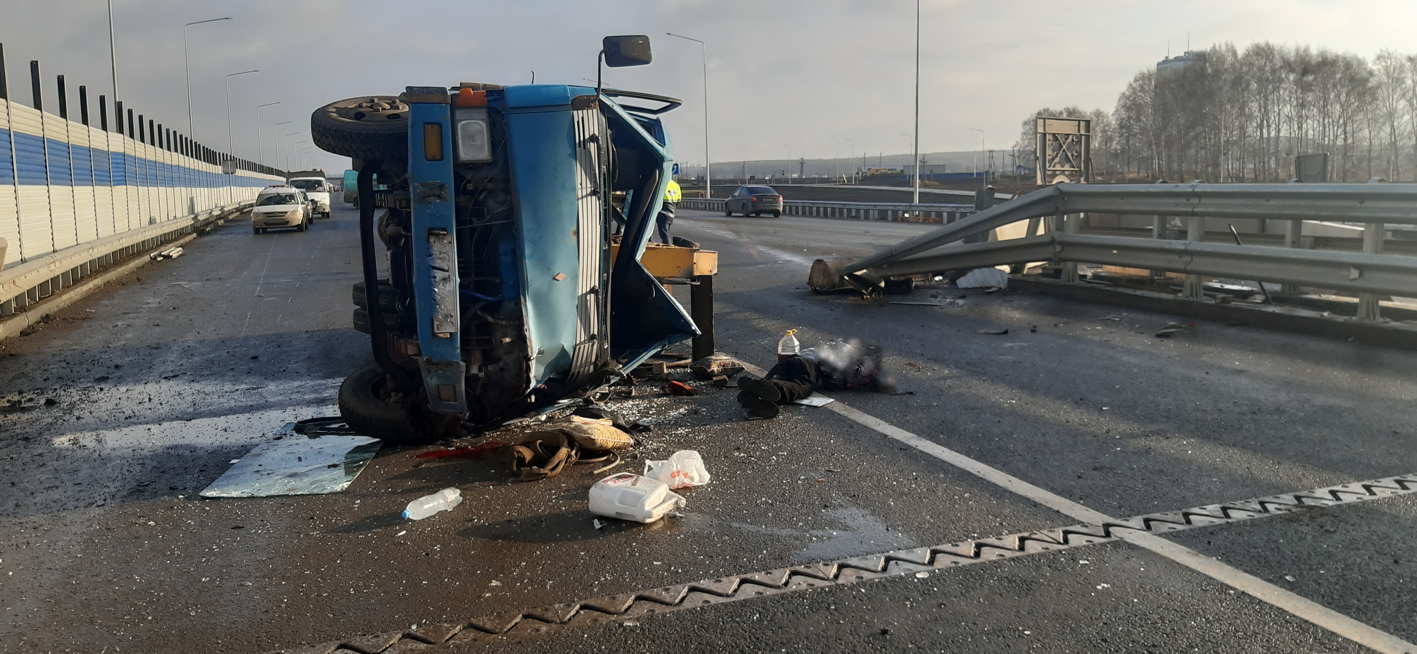 Трагедия произошла 20 ноября. Известно, что 53-летний водитель Mitsubishi Canter ехал в сторону Москвы. По предварительным данным, он не выбрал безопасную скорость, в результате чего влетел в бетонное и металлическое ограждения. После грузовик опрокинулся на левую сторону.