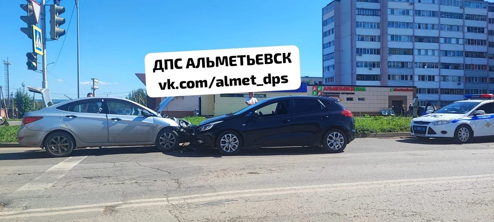 В Альметьевске на перекрестке на улице Гафиатуллина произошла авария. Лоб в лоб столкнулись две иномарки. Информация о дорожном происшествии появилась в группе «ДПС Альметьевск» во «ВКонтакте».