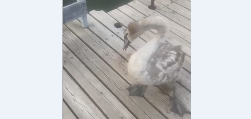 Из Менделеевска в Альметьевск «переехал» лебеденок. Об этом на своей странице во «ВКонтакте» рассказал мэр Менделеевска Радмир Беляев.