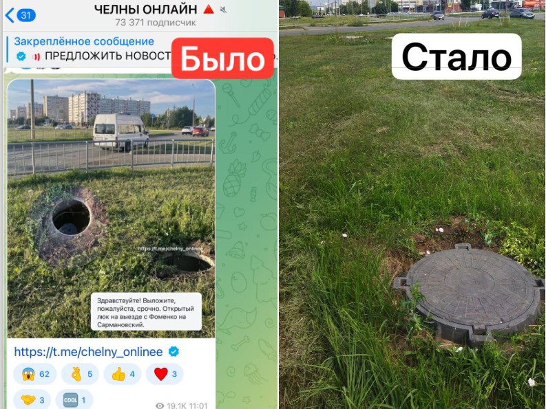 В мэрии Набережных Челнов отреагировали на жалобы местных жителей об открытом люке. Его увидели на въезде в город по Сармановскому тракту.