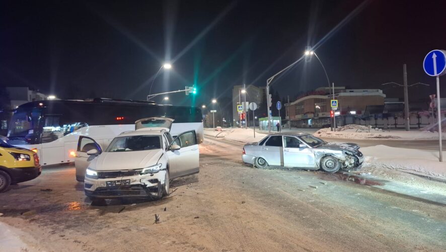В Нижнекамске на перекрестке Строителей – Тукая у Центрального рынка 19-летний парень спровоцировал аварию. Молодой человек за рулем «Лады Приора» ехал со стороны улицы Вокзальная. При повороте налево он не уступил дорогу Volkswagen Tiguan.