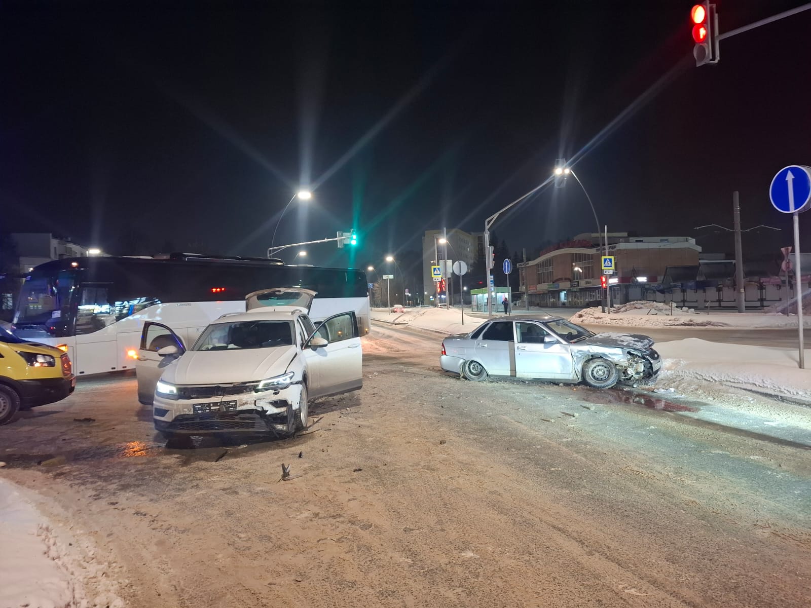 В Нижнекамске на перекрестке Строителей – Тукая у Центрального рынка 19-летний парень спровоцировал аварию. Молодой человек за рулем «Лады Приора» ехал со стороны улицы Вокзальная. При повороте налево он не уступил дорогу Volkswagen Tiguan.