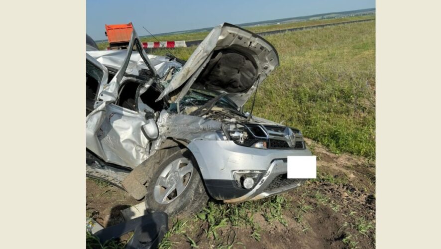 В Нижнекамском районе на строящейся дороге М-12 у Сарсаз-Бли случилось серьезное ДТП. По предварительной версии, 49-летний мужчина на Renault Duster не уступил дорогу «МАЗу» и влетел в него.