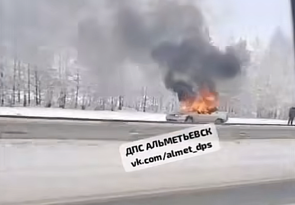 В Альметьевском районе на трассе между селом Ближний Ямаш и станцией Акташ полыхает машина. Кадрами с места в социальных сетях поделились очевидцы.
