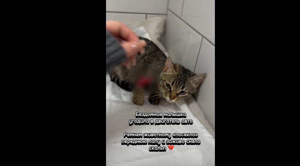 Елабужский волонтер Варвара Колесникова рассказала в соцсетях о несчастном случае, который едва не стоил жизни бездомному котенку. По словам женщины, детеныш залез под капот автомобиля. Но владелец машины не заметил кошку — транспорт завелся, а ее накрутило на ремень.