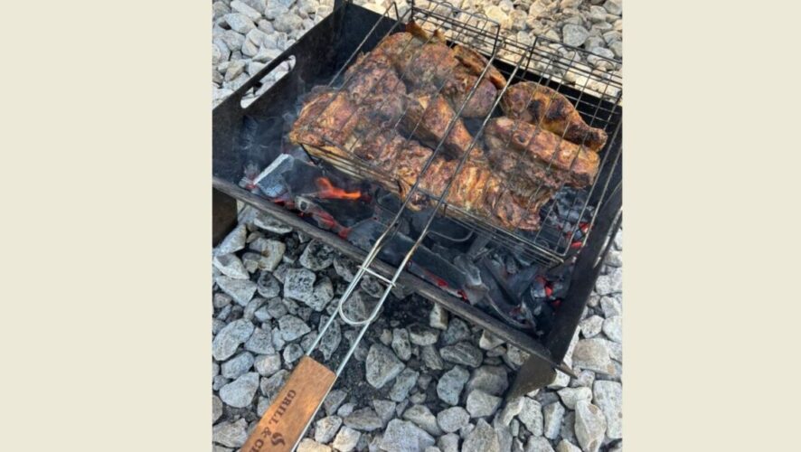 На мангале он приготовил шашлыки, пожарил колбаски и угостил бригаду.