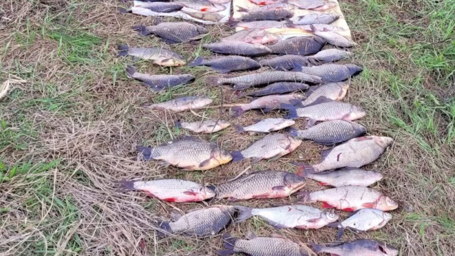 Во время осмотра места правоохранители нашли две рыбацкие сети, деревянную лодку с веслами. Мужчины успели выловить 69 рыб.
