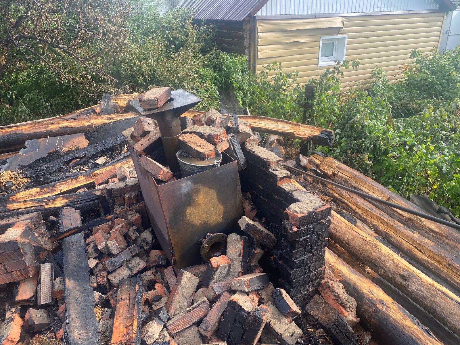 В результате строение на площади 12 кв.м сгорело. У соседней бани оплавилась обшивка на двух «квадратах».