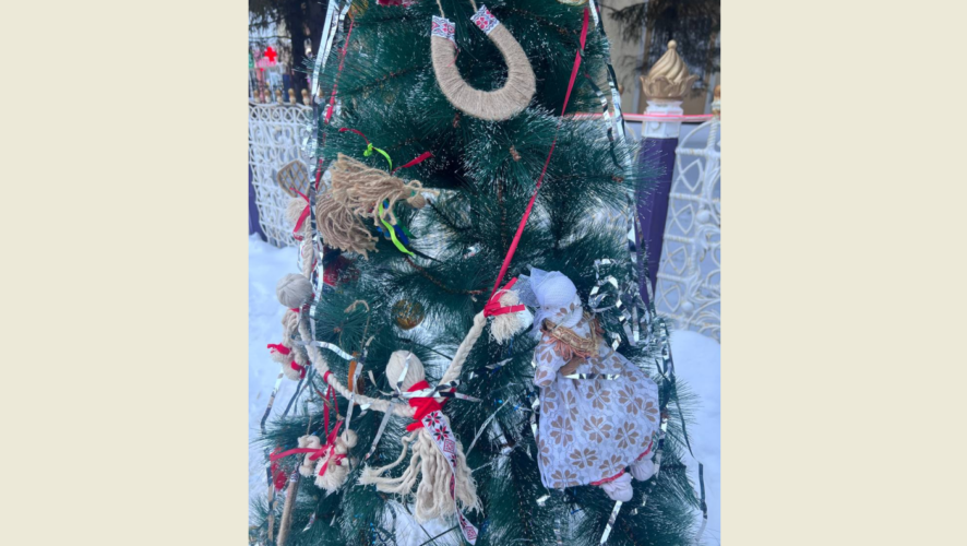 Отмечается, что главный символ Нового года сельчане украсили игрушками ручной работы.
