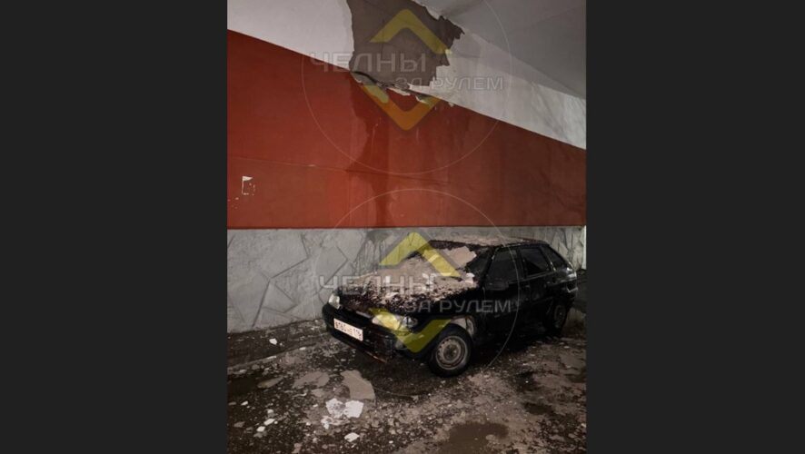 В Набережных Челнах на машину обрушилая огромный кусок штукатурки в арке. Как сообщили в местном Телеграм-канале очевидцы, это произошло у дома 51/04.