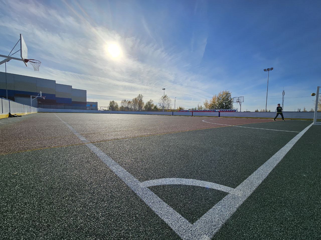Новая универсальная спортивная площадка за спорткомплексом «Единая Россия» появилась в Елабуге. Как сообщил глава Елабужского района Рустем Нуриев, новое пространство позволит заниматься футболом, мини-футболом, волейболом, баскетболом и хоккеем круглый год.