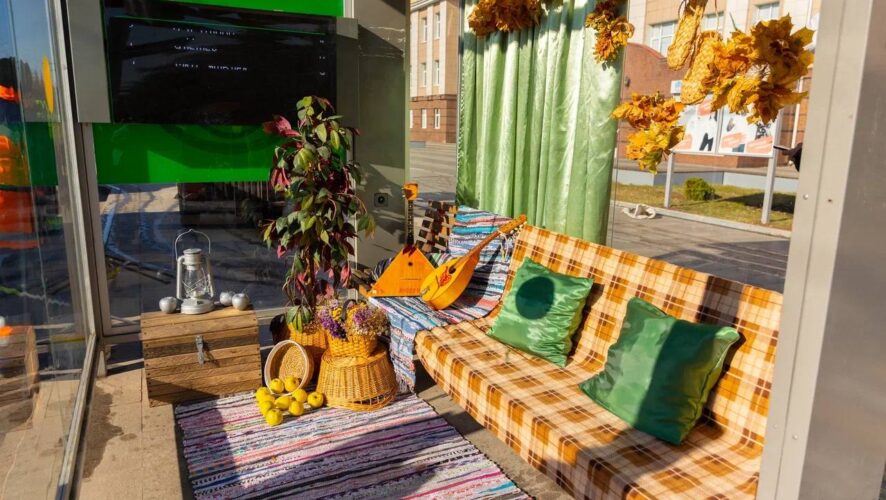 Горожане во время ожидания автобуса могут сделать селфи в антикварном зеркале или устроить настоящую осеннюю фотосессию.![]()