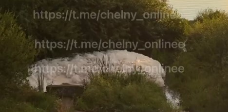 Судя по опубликованным кадрам, большие клубы пены окутали поверхность реки.