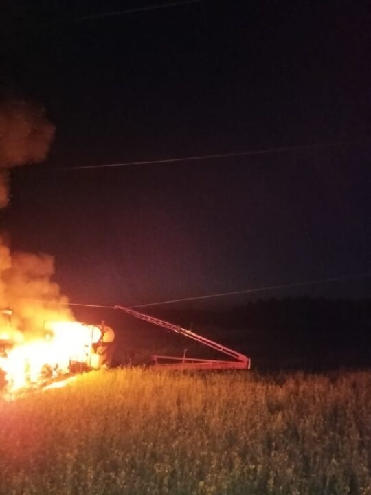 К прибытию пожарных подразделений трактор был полностью объят огнем. Кроме того, горели прицепная бочка и оборудование опрыскивателя. Последнее задело одну из линий электропередач.
