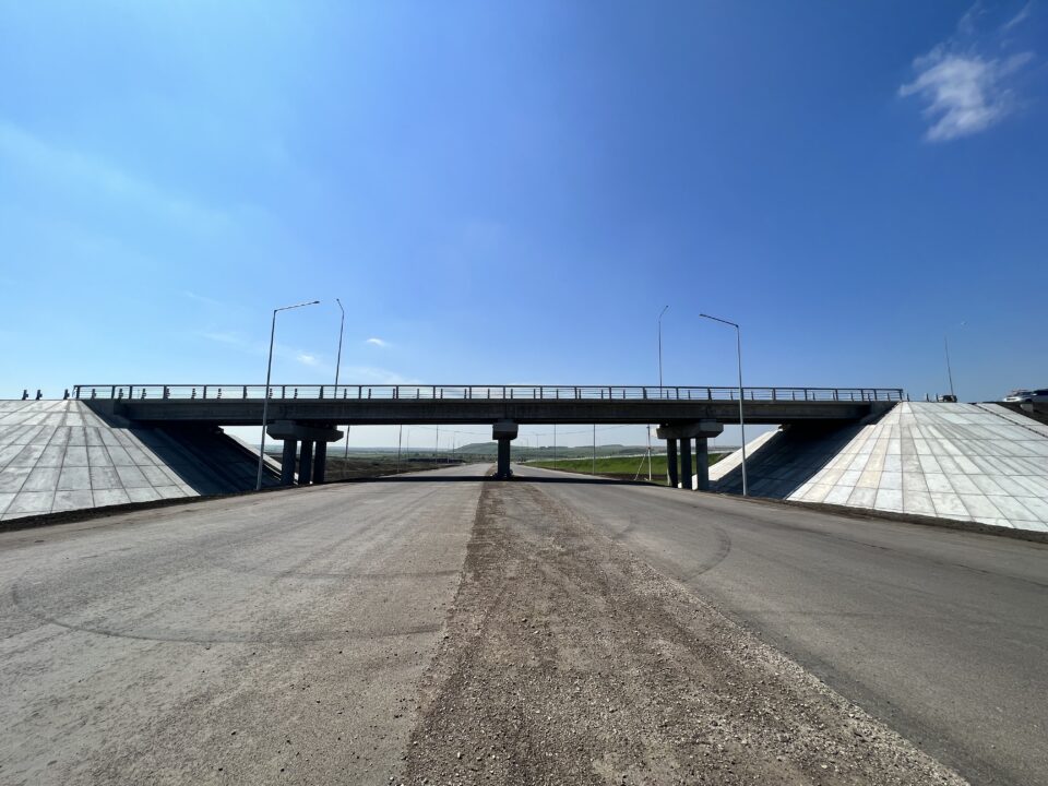 Для строительства четырехпролетного объекта специалисты устроили пять опор высотой до 6 м, смонтировали 20 железобетонных балок, монолитную плиту. Также установили деформационные швы, нанесли гидроизоляцию и уложили нижний слой покрытия из устойчивой к вибрационным нагрузкам.