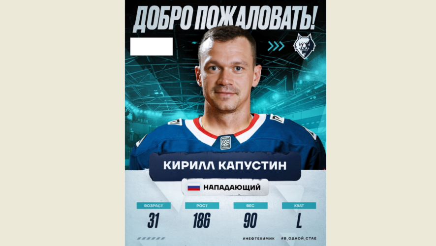 Нижнекамский хоккейный клуб «Нефтехимик» заключил контракт с 31-летним Кириллом Капустиным. Команда пополнилась нападающим.