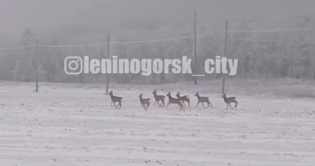 Судя по кадрам, которыми в местном Телеграм-канале поделился лениногорец, семь животных скакали недалеко от линий электропередач. Автор сообщения пошутил, что Дед Мороз навестил жителей района.