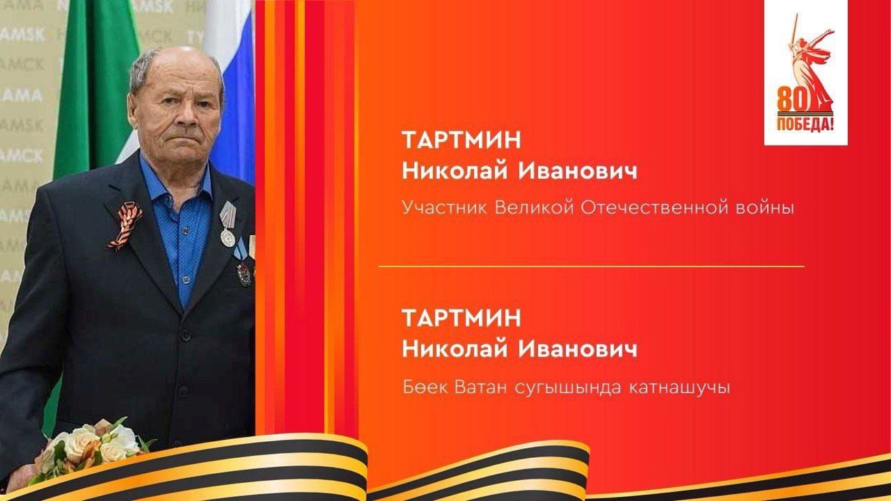 Тартмин родился в деревне Нижнее Афанасово под Нижнекамском. Был мобилизован в стрелково-учебный полк в 1944 году. С мая 1945-го служил минометчиком. Позже – на охране военнопленных. Награжден медалью «За победу над Японией». После демобилизации, в 1951 году, работал в «Татэнергострое».