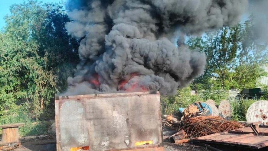 В Альметьевске на улице Шамиля Усманова, 1 полыхал металлический контейнер. Внутри него находились старые автомобильные покрышки.